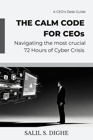 The Calm Code for CEOs is a practical leadership manual for the moments when cyber chaos hits and every second counts. Written by our CEO Mr. Salil Dighe for MDs, CEOs, and Board Leaders, it strips away theory and delivers a structured survival guide for the most decisive window of any cyber incident, the first three days.