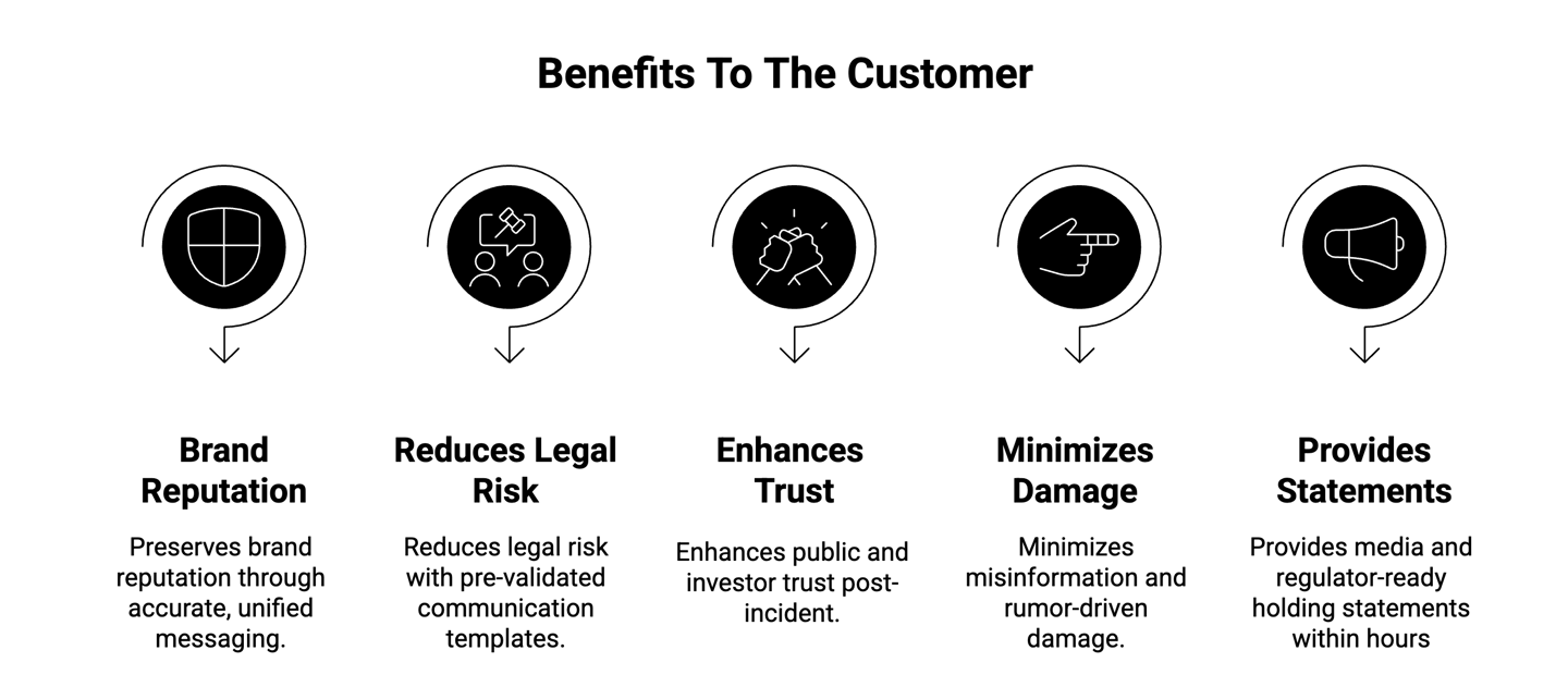 A rapid executive-led program that helps organizations manage stakeholder communication, media, and investor relations after a cyber or reputational incident.